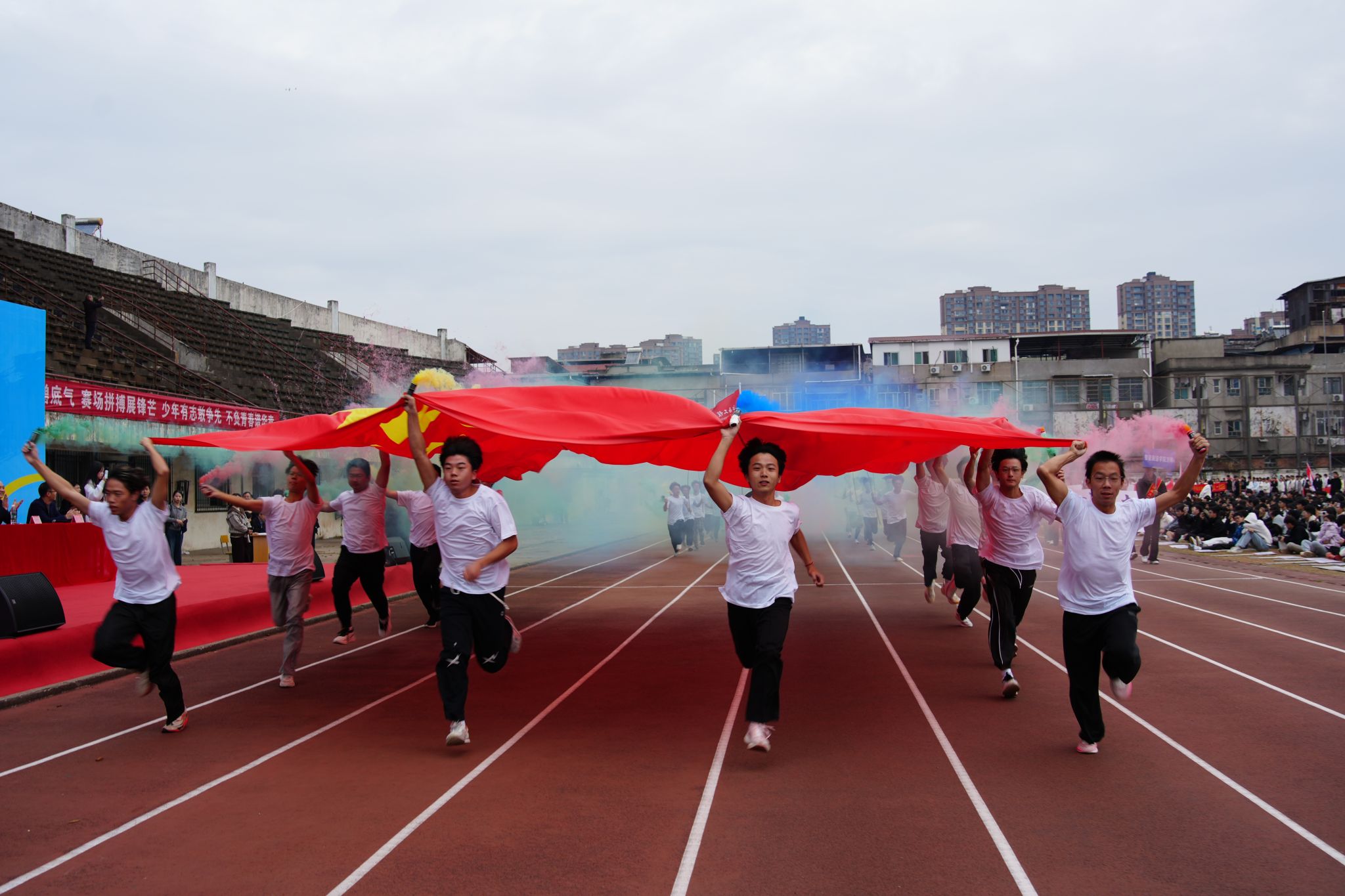 11月13日,学校2025年田径运动会开幕式在青山湖校区运动场举行。学校党委书记花严红出席并宣布运动会开幕,党委委员、副校长王涛致开幕词,在家校领导出席开幕式。开幕式由党委委员、副校长杨慆主持。党委书记花严红宣布运动会开幕党委委员、副校长王涛致开幕词王涛代表学校党政领导班子向为运动会积极筹备、精心组织、付出辛劳的师生员工表示感谢。他指出,本次田径运动会是学校全面贯彻党的教育方针、推进素质教育的重要举措,也是对师生精神风貌和体育工作成果的集中检阅。...