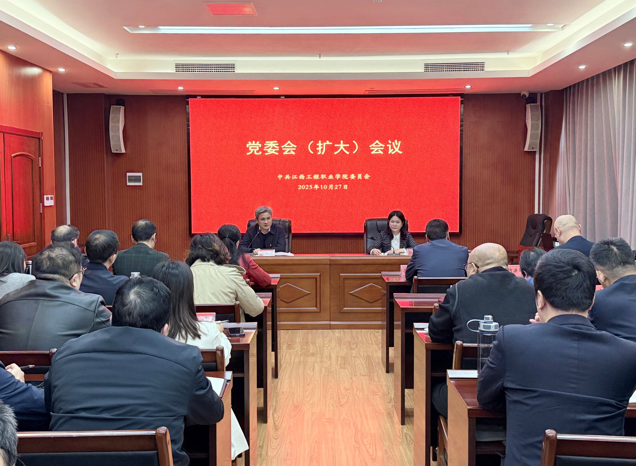 10月27日下午,学校召开党委会(扩大)会议,传达学习党的二十届四中全会精神,省委常委会精神,全省领导干部会议精神,省委教育工委、省教育厅领导干部会议精神。学校党委书记花严红主持会议并讲话,党委副书记、校长孙江云传达会议精神。会议指出,党的二十届四中全会是在以中国式现代化全面推进强国建设、民族复兴伟业的关键时期举行的一次十分重要的会议,对凝聚全党全国各族人民信心与力量,不断把强国建设、民族复兴伟业推向前进,...