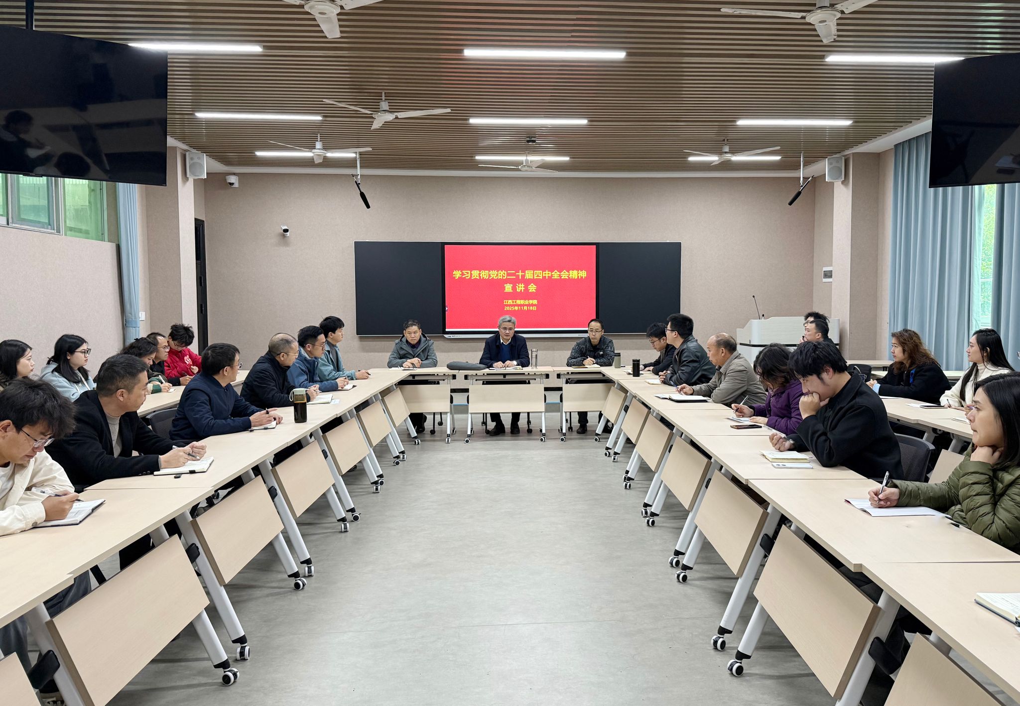 为深入学习宣传贯彻党的二十届四中全会精神,扎实推进立德树人根本任务落实落地,及时了解掌握学生学习、生活和思想状况,提升思政工作育人成效,10月30日,学校党委书记花严红深入课堂、食堂和学生宿舍开展“思想政治工作体验日”和“学生生活体验日”活动。学校有关职能部门和二级学院负责人共同参加。一堂生动的思政课30日下午,花严红来到莲塘校区,以《决战“十四五” 奋发向前行》为题,为同学们讲授“学习贯彻党的二十届四中全会精神”...