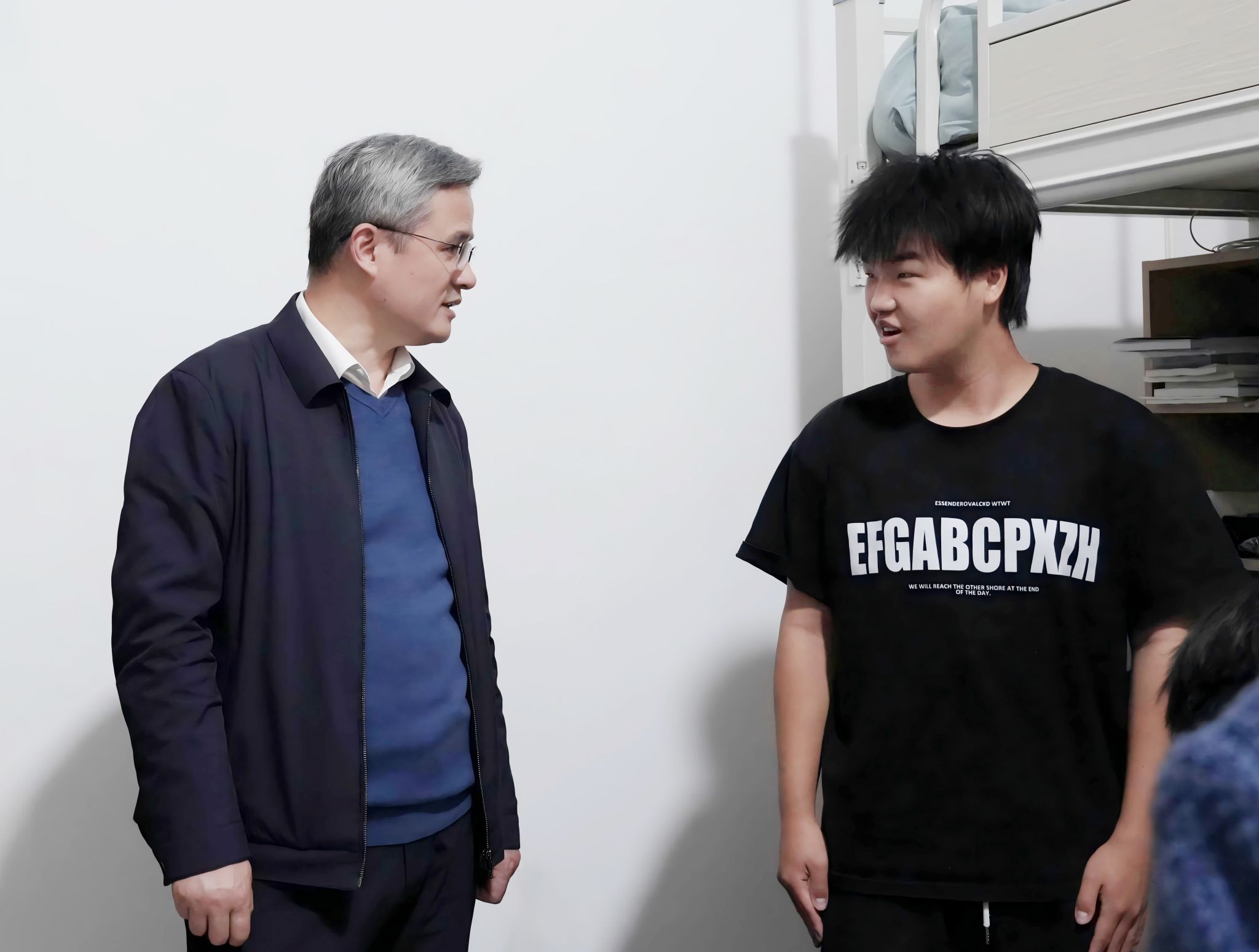 傍晚,花严红与青年学子共进晚餐。他关切地询问学生食堂卫生、饭菜口味、菜品价格等情况,要求职能部门严格把控食品安全关,注重膳食均衡,让同学们吃得健康、吃得放心。随后,花严红来到学生宿舍,与同学们唠起了“家常”。“饭好吃不好吃?”“住得还习惯吧?”“多跟父母通通电话。”一句句暖心话语迅速拉近了师生距离。他仔细查看宿舍卫生、安全设施等状况,提醒同学们养成良好的生活习惯,增强安全意识。